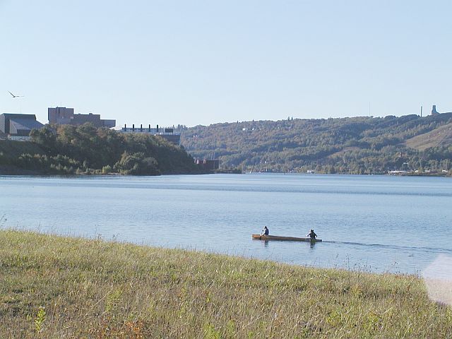 ![]() The Ranger III with the recently improved Quincy Smelter Site buildings across the channel |